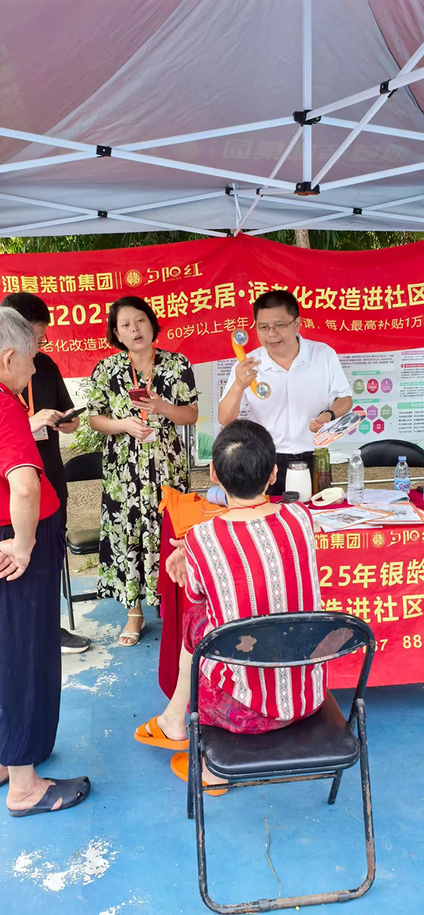 此次活動通過面對面、零距離的溝通方式,讓更多老年人了解適老化改造的重要性與政策福利,更切實解決了老年群體及其家庭的實際困惑,將關(guān)愛落到實處?;顒蝇F(xiàn)場,鴻基裝飾集團(tuán)董事長胡克偉表示:“后續(xù)集團(tuán)還將持續(xù)關(guān)注社區(qū)老年群體需求,憑借專業(yè)的設(shè)計與施工能力,為符合條件的家庭提供更優(yōu)質(zhì)的適老化改造服務(wù),讓“養(yǎng)老”變“享老”,為老年居民打造安全、便捷的居家環(huán)境”。